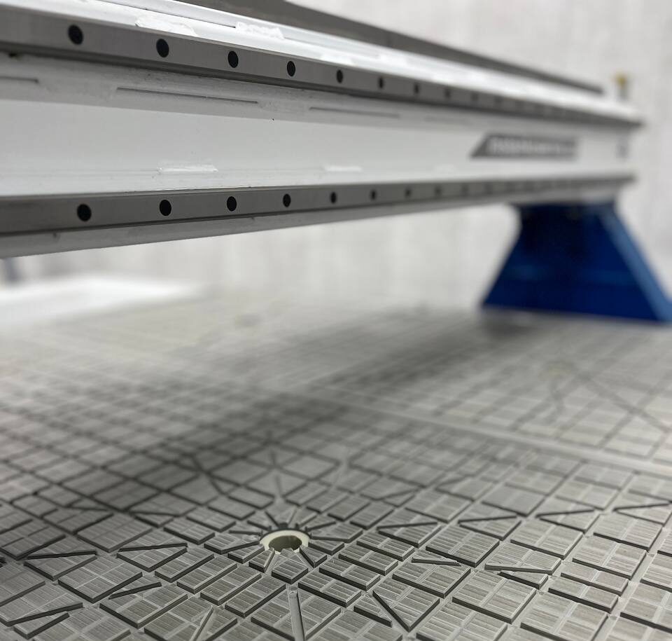 Цільнозварна станина виготовлена зі стальних профільних труб. Опори порталу виконані з литого чавуну для запобіганню надмірних вібрацій при обробці. За для забезпечення якості деталей верстата вони обробляються на сучасному металообробному обладнанні з ЧПУ.