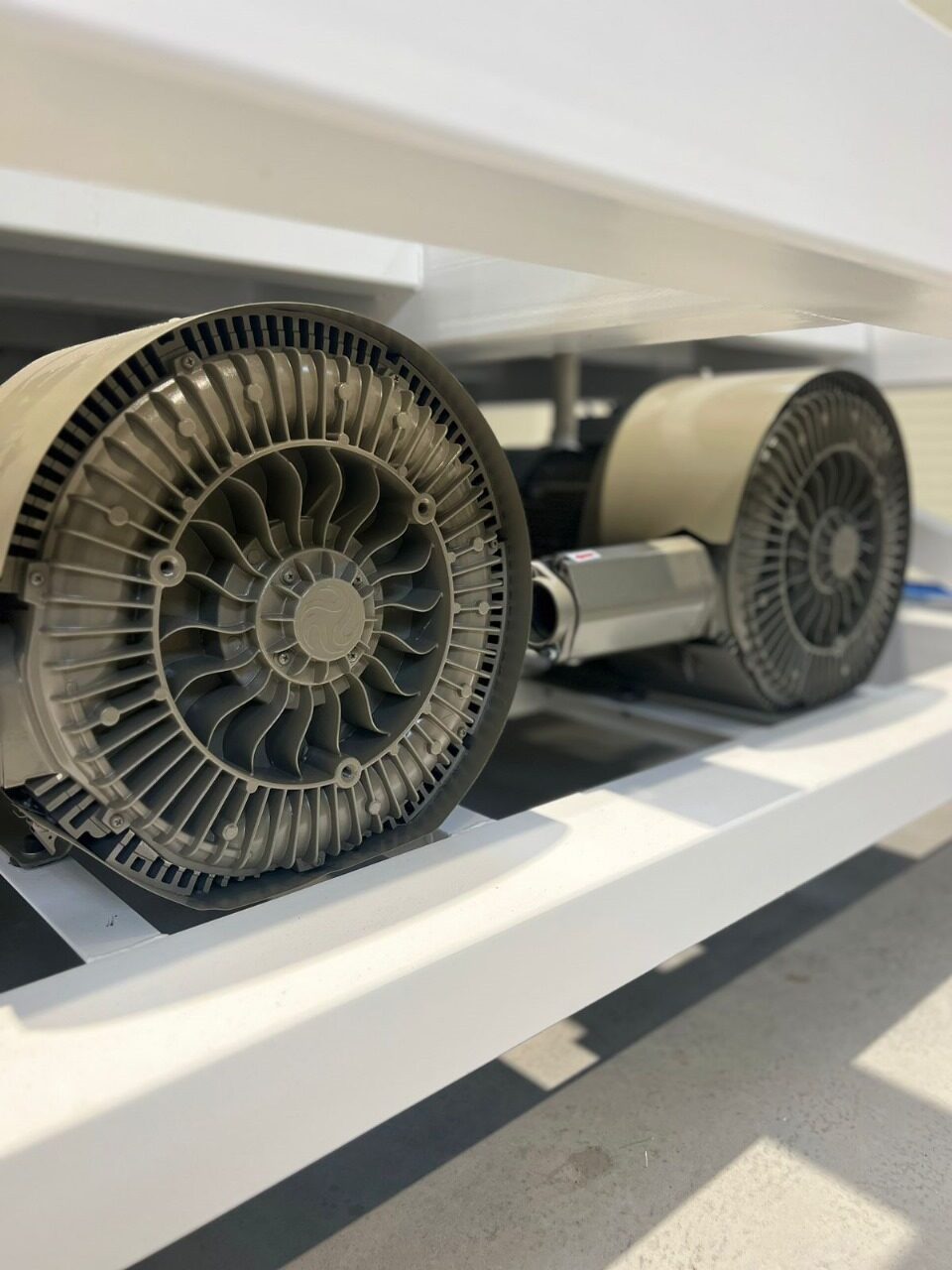 ATS-6020 має велике робоче поле. Для надійного утримання заготовки на вакуумному столі, верстат базово комплектується двома вакуумними насосами потужністю 5,5 кВт. Два насоси разом з системою фільтрації інтегровані у станину верстата, що не перешкоджає роботі оператора та зменшує необхідне місце для розташування верстата.