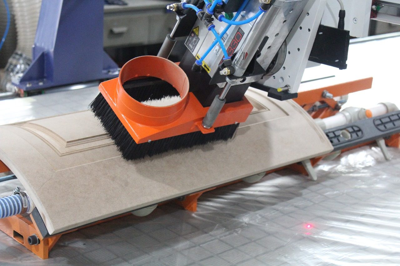 Yes, we have developed specialized fixtures for curved furniture fronts. This equipment is universal and does not require effort to fix the workpiece, as it has a vacuum fixation system. This system allows the processing of MDF fronts of various shapes and radii.