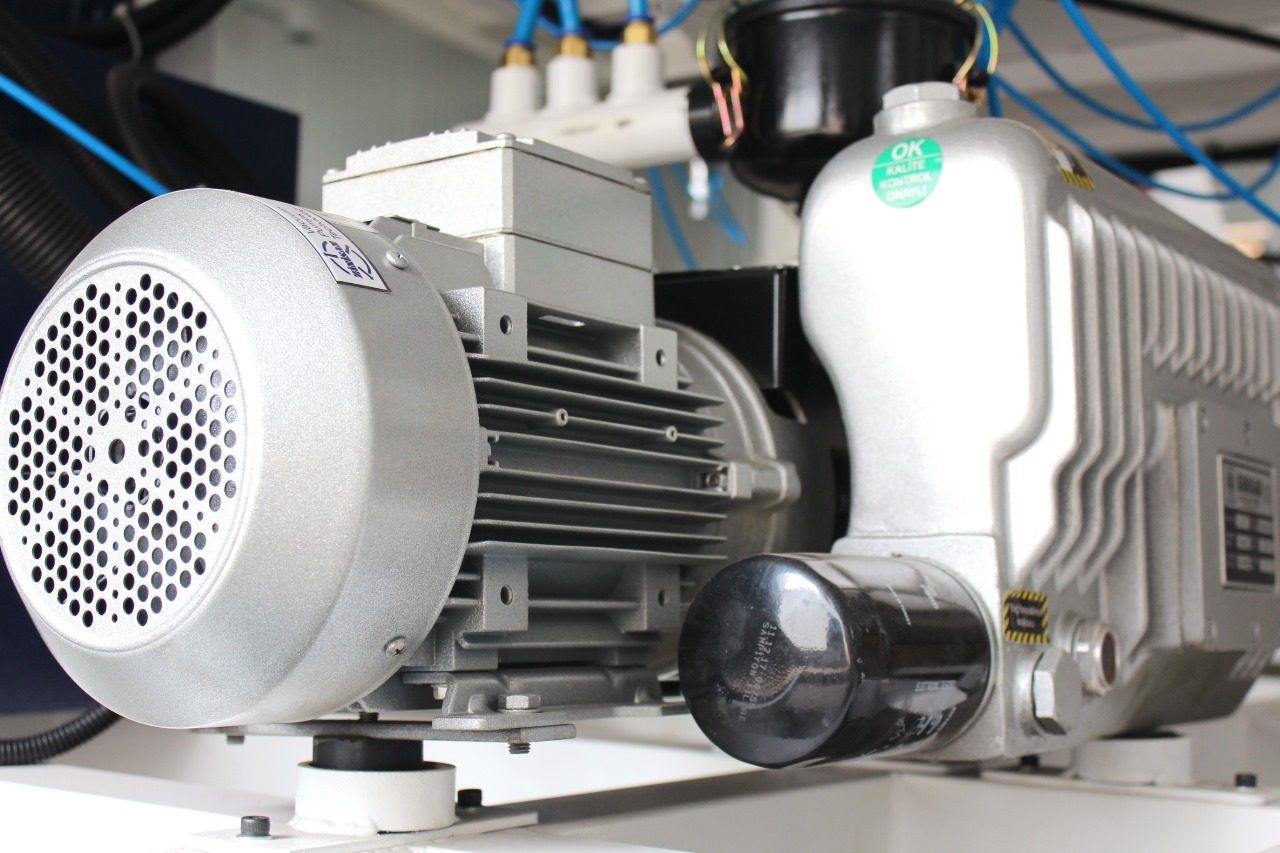 The vacuum pressing technology is based on laminating the surface with veneer or PVC film by placing the sample in a heat-resistant chamber with a previously applied adhesive compound. The chamber is heated to the required temperature, and air is extracted with the help of a vacuum pump to create a negative internal pressure, allowing the applied material to adhere firmly.