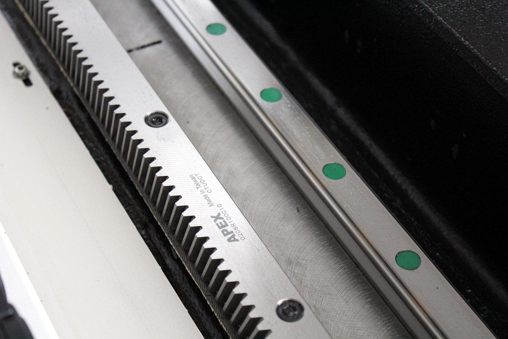 Станок укомплектован аспирационной установкой для удаления газов из рабочей области, а для обеспечения длительного срока службы все механические узлы станка защищены защитными гофрами.